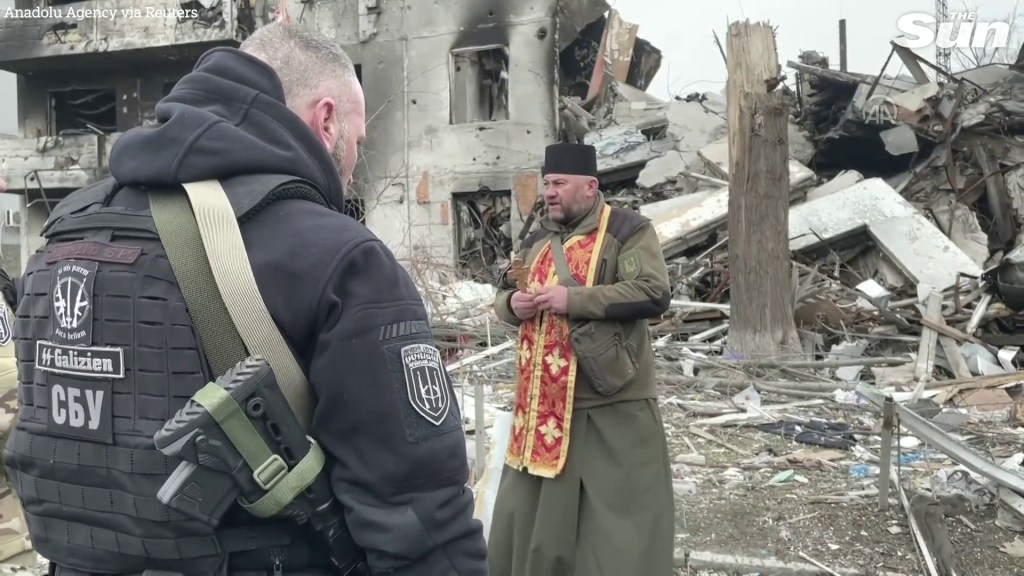 Dans les zones de combat ukrainiennes, les policiers sont habituellement des para-militaires, comme le montre cette capture d’écran, du personnel de la sûreté d’État (SBU), dans le banlieue de Kiev au mois d’avril, après la retraite russe, à plus forte raison aujourd’hui autour de Lisichansk