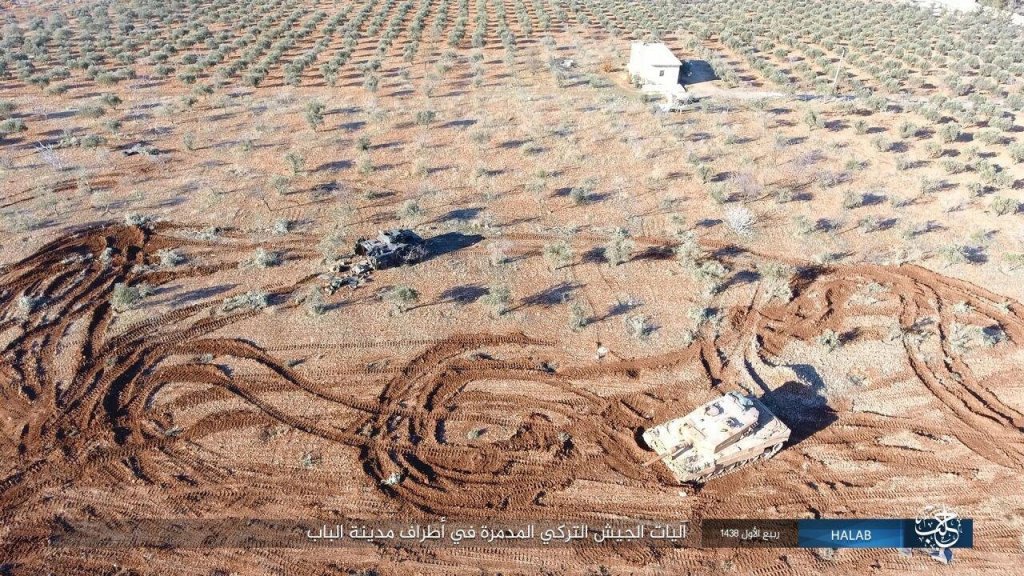 Here in northwestern Syria, on December 25, 2016, a Leopard 2 (right) has been demilitarized