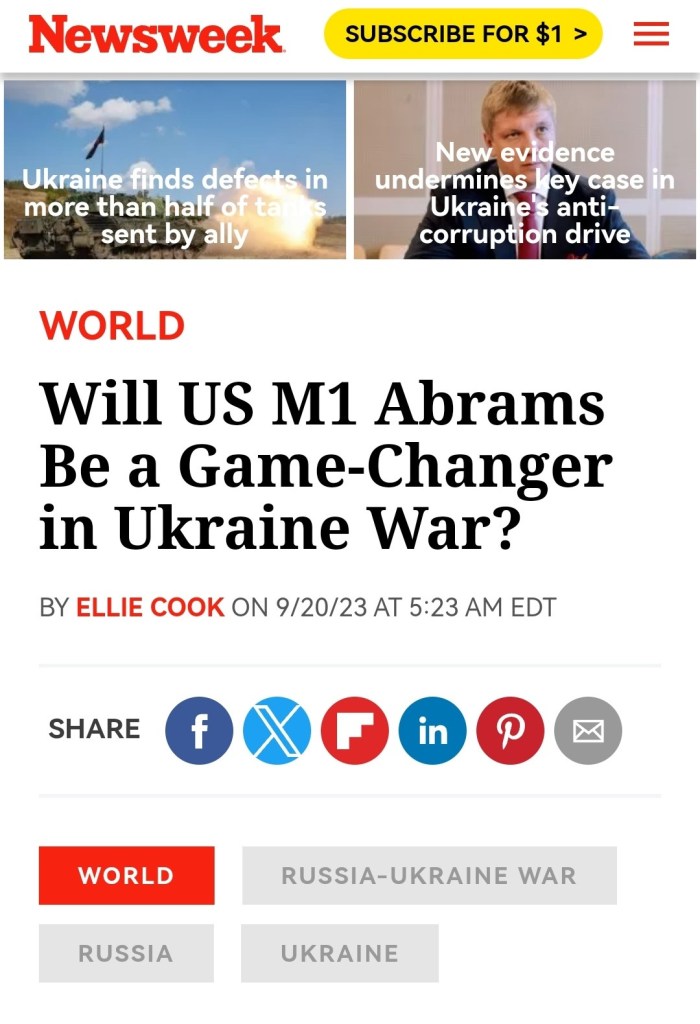 After the failure of the German Leopards, the US has previously demanded that its tanks were kept in reserve, in order to avoid their public destruction. But the military situation is so serious that such PR issue seems now negligible.