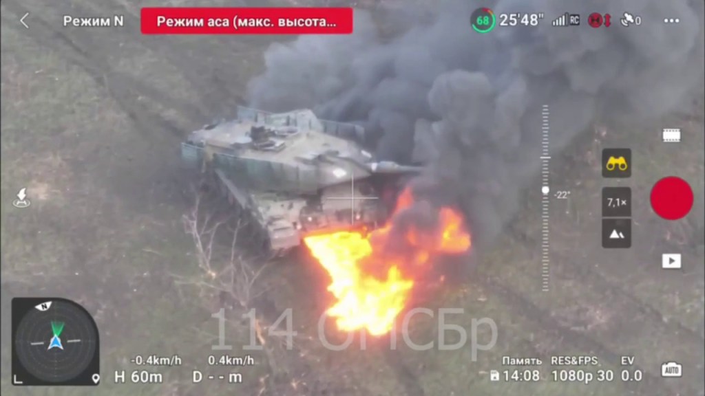 A video surfaces, is showing in Kupyansk area an ablaze Stridsvagn [fighting car] 122, improved version for Sweden of the German Leopard 2A5.