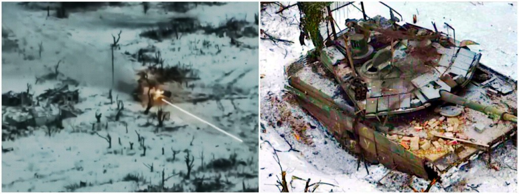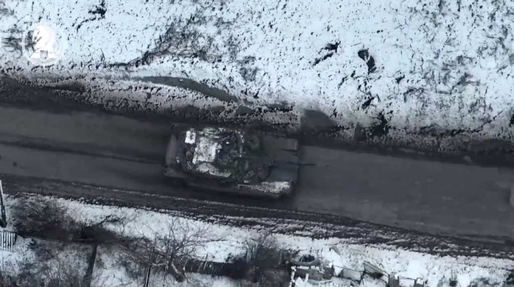 On January 5, 2024, one Russian platoon -one tank and three infantry vehicles- meets at close range two Atlanticist tanks, on a forest road in Pokrovsk sector, Donetsk People’s Republic
