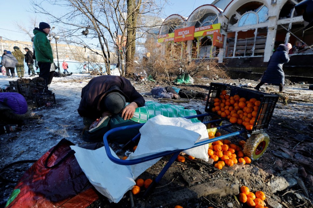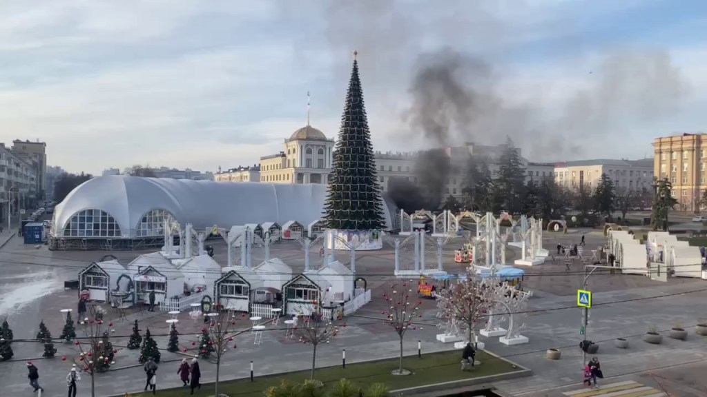 As usual on New Year’s Eve, the Atlanticist artillery deliberately targets civilians in downtown Donetsk city. Anti-personnel ammunition, rockets and NATO cluster 155 mm shells, fall right after midnight, some on Lenin square, where fortunately, no mass celebration has been scheduled. Four civilians are killed