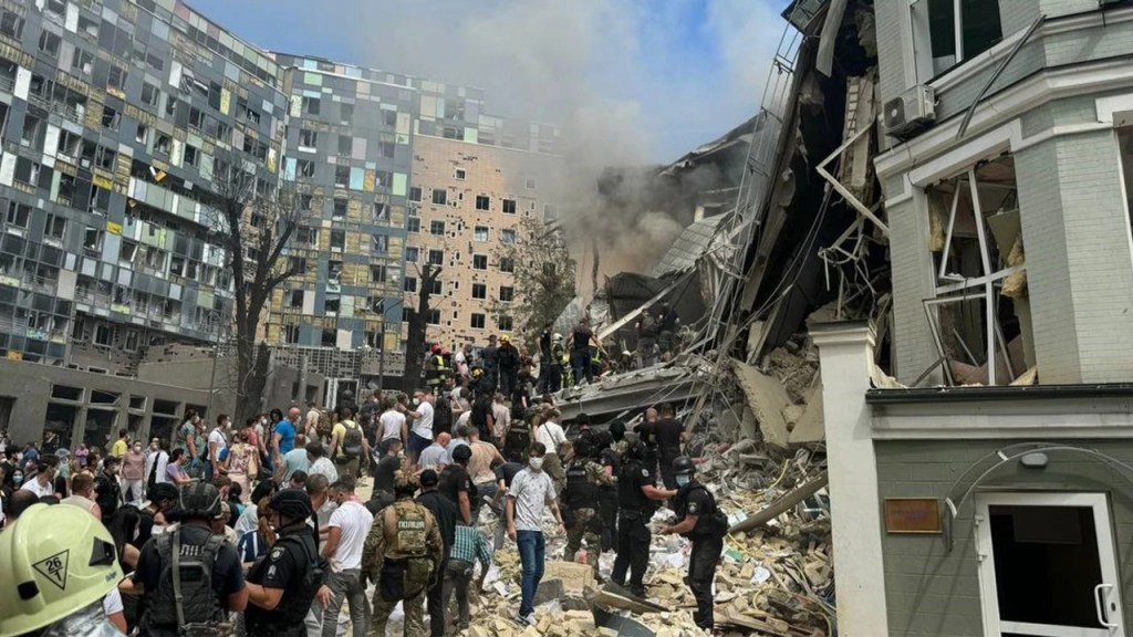 Prime minister Yulia Svyrydenko shows the aftermath on social media. In the early morning, during a usual wave of surgical strikes all over Ukraine, Russia has targeted the cabinet room in Kiev