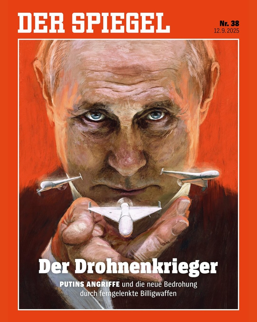 Eleven days after the fake news that Western mainstream media spread, upon lies from the European commission about an alleged GPS jamming from Russia, two days after the alleged incursion of Russian drones in Poland, German magazine der Spiegel publishes a splendid cover