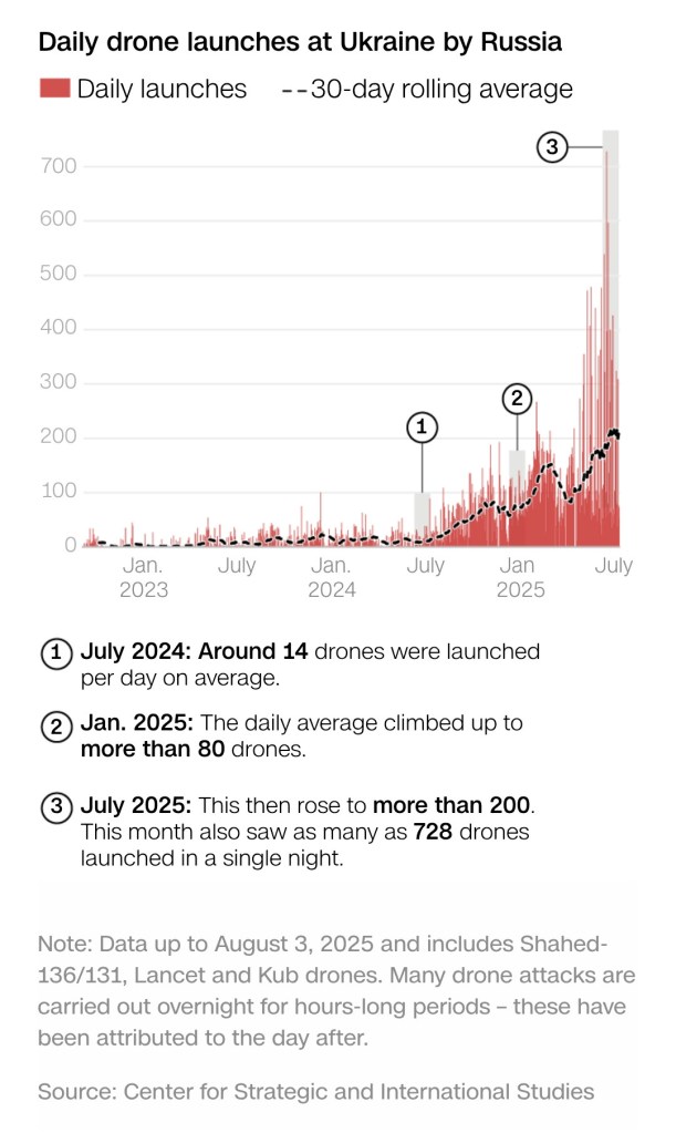 CNN publishes a splendid graphic about the scale of Russian strategic operations with kamikaze drones.