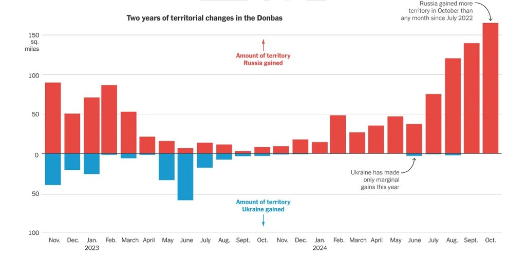 Ukraine had mobilized and while in September, its numerical superiority was temporarily 3 to 1, counterattacked with success in Kharkov region. At the other end of the battlefield, Russia was unable to ensure the supply through the dniepr of its forces in Kherson, which was evacuated in November.
