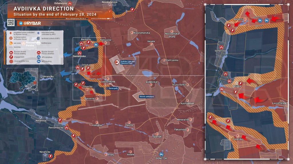 [battle for Avdeevka, emergence of Russian glide bombs, failed Atlanticist offensive in Kursk region]