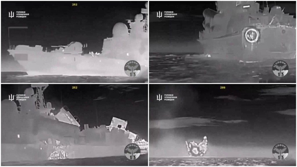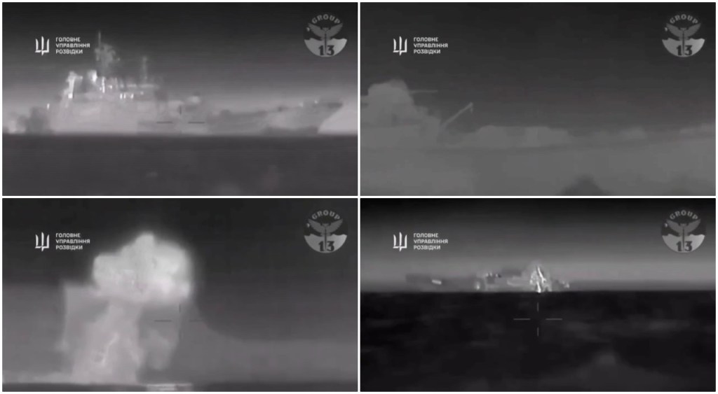 Around 3:00 am, the Atlanticist forces attack Feodosia harbor, on the southeastern coast of Crimea. Jets launch two Storm Shadow cruise missiles from Nikolaev region, west of the Dnieper. One at least hits and sinks the Novocherkassk, a Ropucha-class landing ship which was docked for reparation.