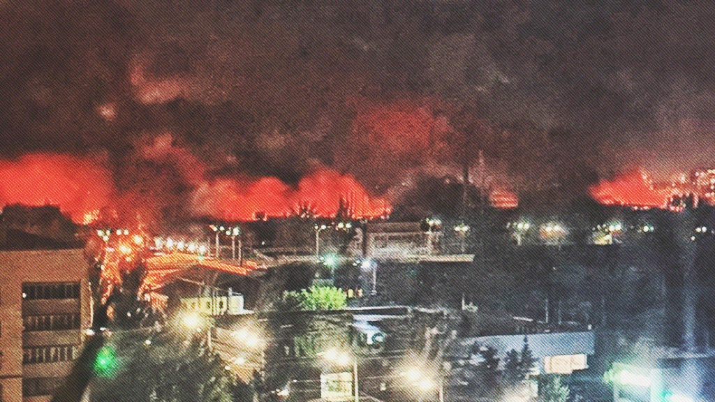 One symbolic strategic strike before dawn, one Russian Geran [Geranium] kamikaze drone burns the house in Lviv, western Ukraine, which was a museum in tribute to Nazi war criminal Roman Shukhevych (1907-1950)
