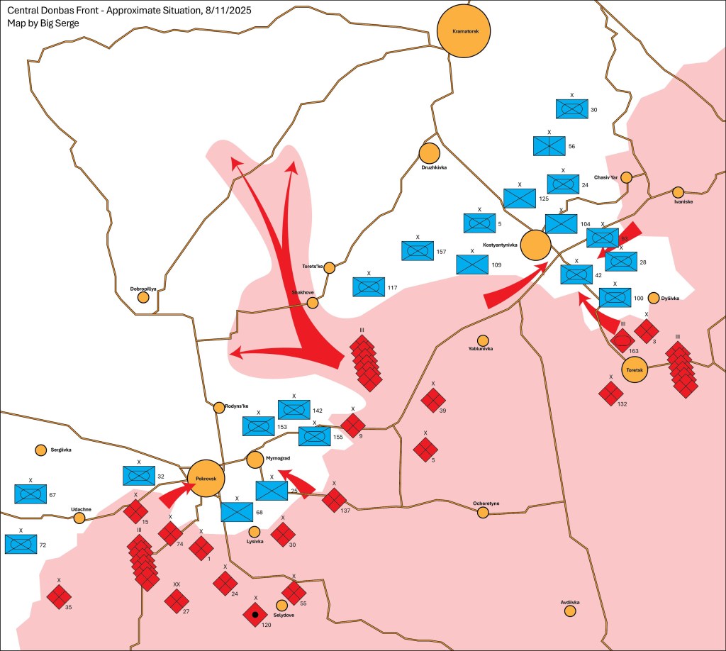 Russian troops take control of the last occupied neighborhoods of Krasnoarmeysk, that Kiev is naming Pokrovsk, in Donetsk People’s Republic. That liberation also seals the encirclement of several thousand Atlanticist fighters in Myrnograd, a few km to the east.