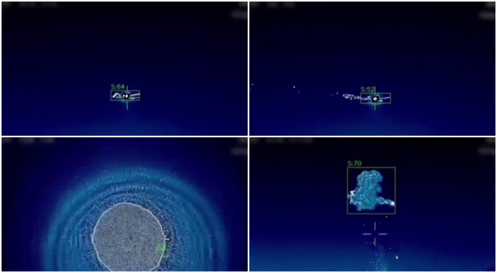 A technical improvement appears in an amateur video : one cruise missile is dropping flares, in order to counter infrared homing air defense.