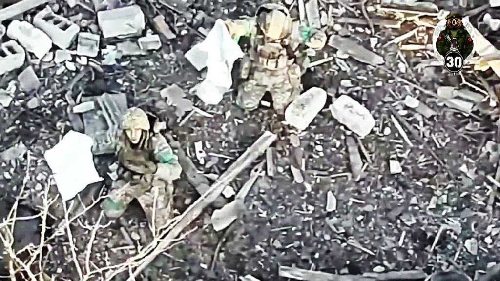 In a video from downtown Krasnoarmeysk -that Kiev is naming Pokrovsk, in Donetsk People’s Republic- two Atlanticist fighters surrender to a Russian drone