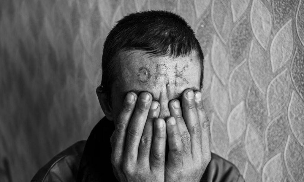 Most of the high-level turncoats managed to flee to Russia, meaning it is mostly lower-level collaborators who are in jail. As Russia continues to strike Ukraine, causing death and misery, there is scant sympathy for these people, as evidenced by one male prisoner with a 12-year sentence who agreed to be photographed but declined to share his name. He had been assaulted by his cellmates while in pre-trial detention. They tattooed the word “Orc” – a pejorative term for Russian soldiers widely used in Ukraine – on his forehead.