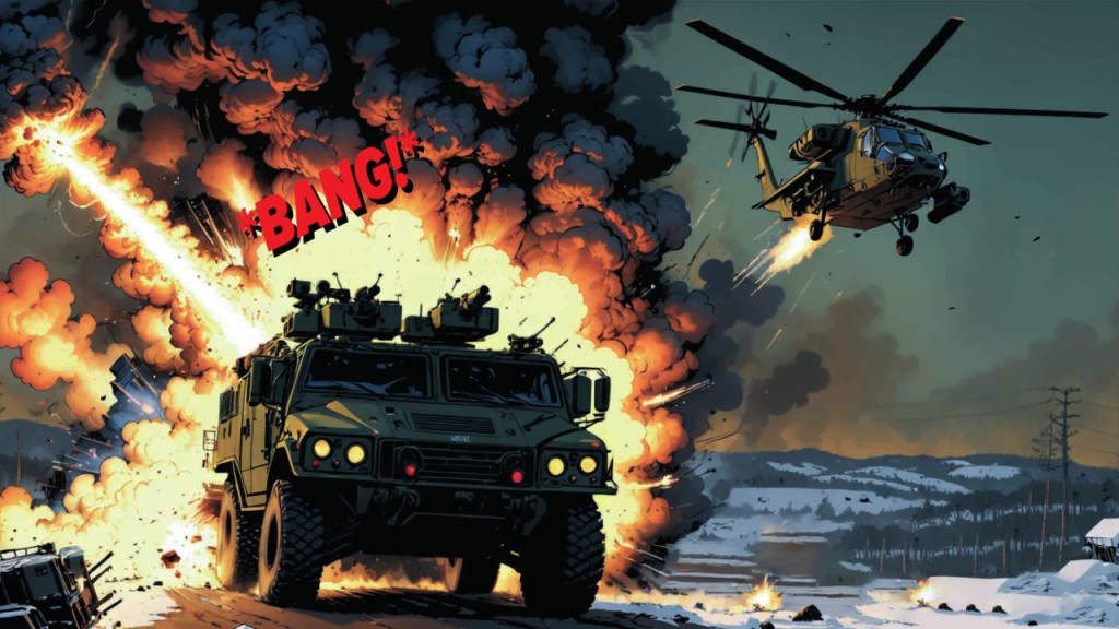 In our story, the heroes faced an armored vehicle chase after a civilian car with civilians and chose to come to the aid of people who had absolutely nowhere to wait for help.