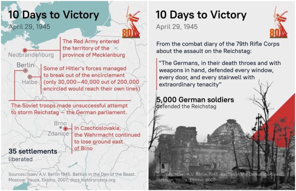 On this day 80 years ago, the Soviet troops pressed on with clearing central Berlin of Wehrmacht forces, with the Reichstag being defended by the most zealous Nazi militants.