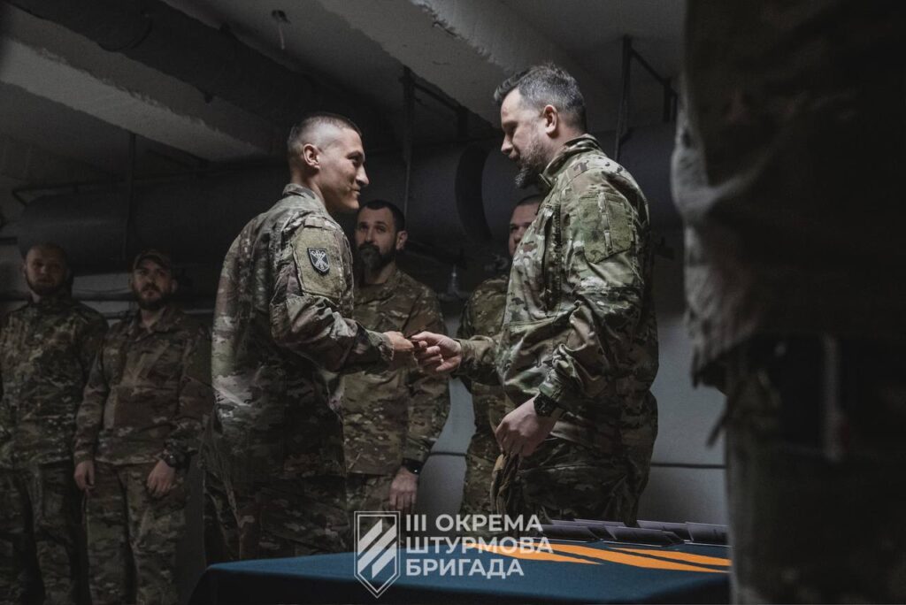 It featured photographs of soldiers taken on the Bakhmut front line during the height of Ukraine’s resistance to the Russian invasion. These soldiers belong to the 3rd Assault Brigade—one of the elite units of the Ukrainian Armed Forces, which was formed in the early days of Russia’s invasion of Ukraine in February 2022. The unit traces its origins to the ultra-nationalist Azov movement and is composed of veterans of the Azov Battalion, which was established in 2014 and took part in the war in the Donbas. Between 2018 and 2024, U.S. Congress banned the organization from receiving funding, arms, training, and other forms of support due to its documented neo-Nazi affiliations and concerns regarding human rights violations.
