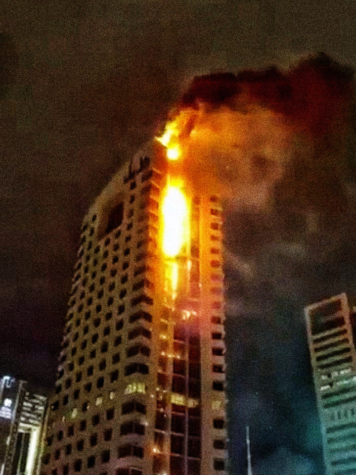 Only Russian and Chinese ships are allowed to pass; Iran has closed the strait of Hormuz. Palauan tanker Skylight has taken a chance, is burning in the morning. At least 150 ships are still west of the strait